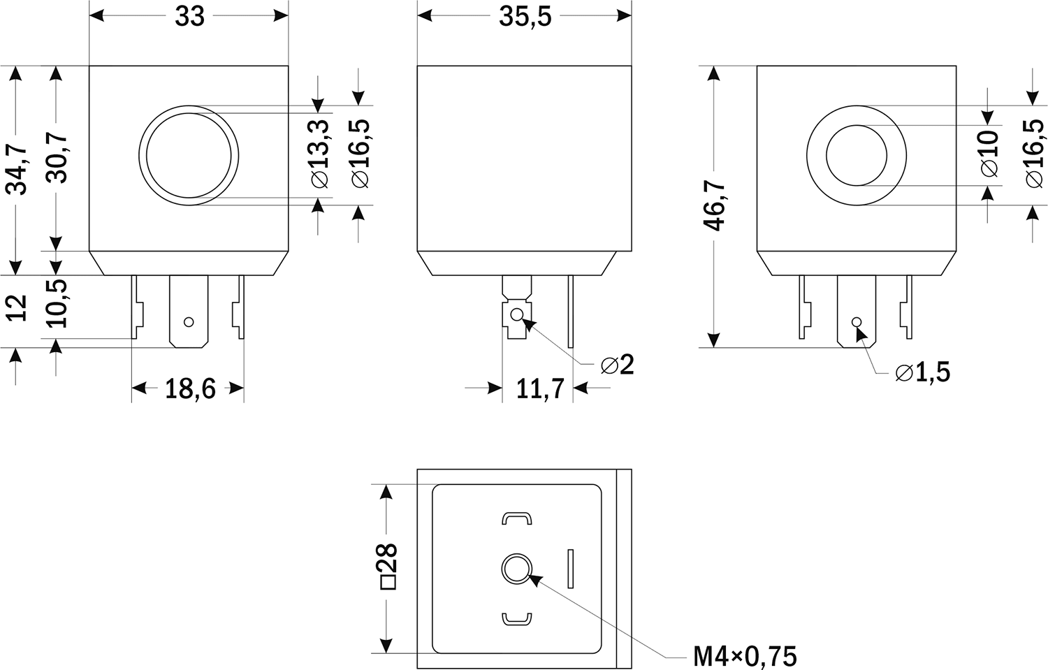 | Габаритные размеры | 36×34×47 мм