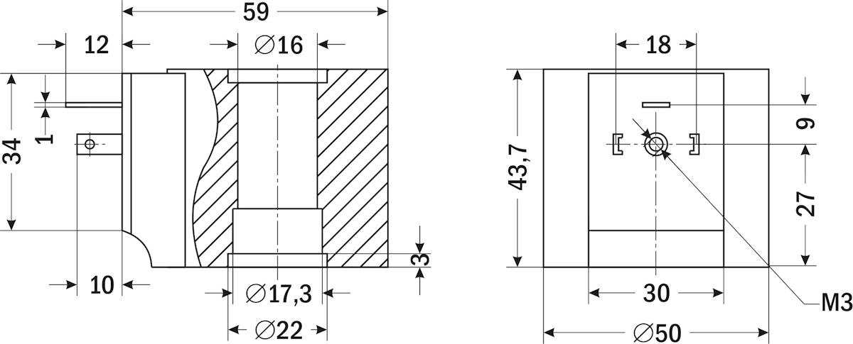 | Габаритные размеры | 43,7×50×59 мм